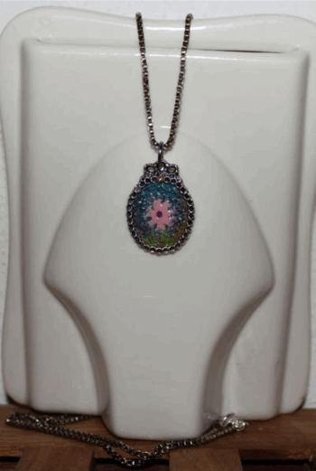 KVÍTEK Skleněný korálek, bezolovnatý cín s mědí, pocínovaný drát. Kvítek je patinován, leštěn a ošetřen antioxidantem. Přívěsek je zavěšen na černé textilní šňůrce 45 cm + 5 cm adjustační řetízek z bižuterního kovu. Velikost přívěsku průměr 3 cm, 4,5 cm na výsku včetně závěsu.   DETAIL1 DETAIL2 DETAIL3 |