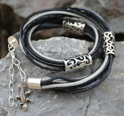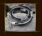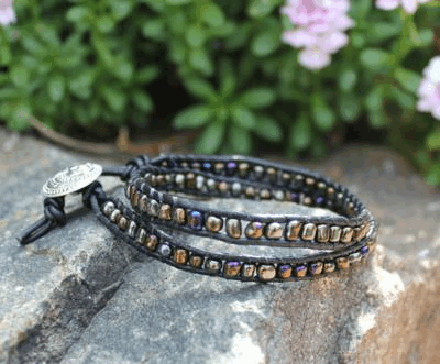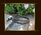 WRAP NÁRAMEK DVOUŘADÝ Černá kůže, skleněné korálky metalíza, S-lon, kovový knoflík.  DETAIL1 |