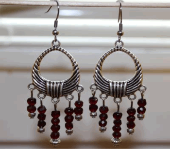 GRANÁTKOVÉ NÁUŠNICE Skleněné korálky, kovové komponenty v barvě starostřbro, háčky z chirurgické oceli. Velikost 2,5 cm x 5,5 cm + háčky.   DETAIL1 |