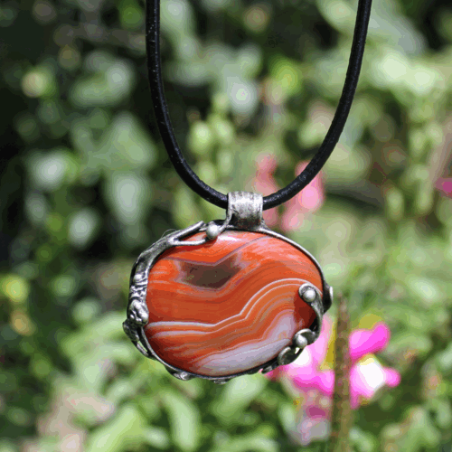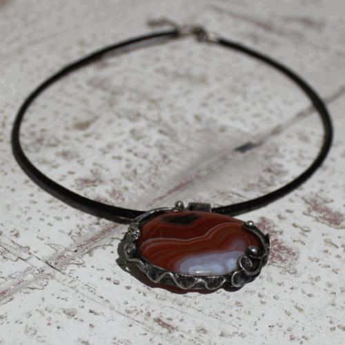 KARNEOL na přání Karneol, bezolovnatý cín s příměsí stříbra, pocínovaný drát, patinován, leštěn, ošetřen antioxidantem. Přívěsek je zavěšen na černé kulaté kůži 45 cm + adjustační řetízek, zapínání na karabinku.  DETAIL1 DETAIL2 |