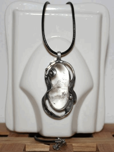 CÍNOVANÝ ŠPERK S KŘIŠŤÁLEM - na přání Křišťál, bezolovnatý cín se stříbrem, černá kulatá kůže 45 cm + 5 cm adjustační řetízek z chirurgické oceli. Přívěsek patinován, leštěn, ošetřen antioxidantem.  DETAIL1 |