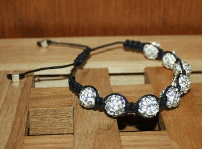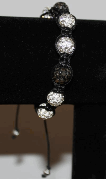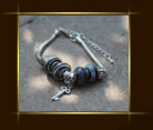 SHAMBALLA STŘÍBRNOČERNÝ Drhaný náramek, polymerové korálky, bavlněná šňůrka, kovové korálky.   DETAIL1 |
