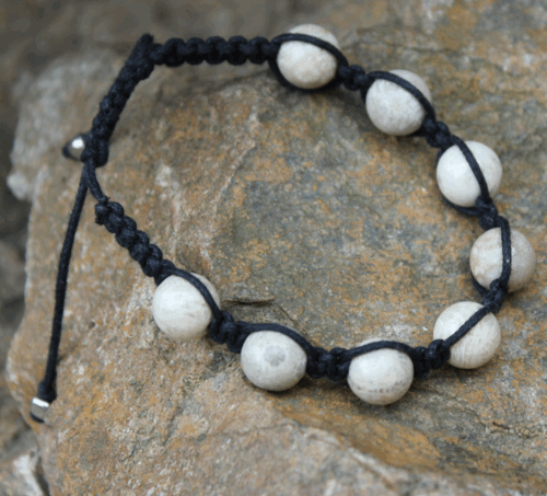 SHAMBALLA NÁRAMEK ZKAMENĚLÝ KORÁL - na přání Korálky ze zkamenělého korálu, bavlněná voskovaná šňůrka, kovové korálky.  DETAIL1 |