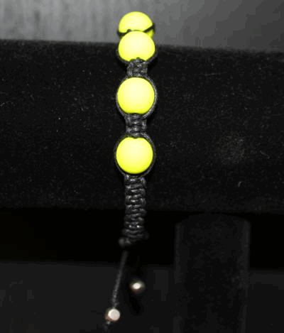 SHAMBALLA ŽLUTÝ NEON UV - NÁRAMEK Mačkané neonové perle, svítí pod UV,bavlněná šňůrka, kovové korálky.   DETAIL1 DETAIL2 |