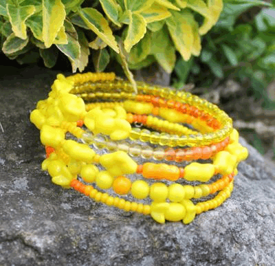 SLUNEČNÍK - náramek Žluté a oranžové skleněné korálky, paměťový drát.  DETAIL1 |