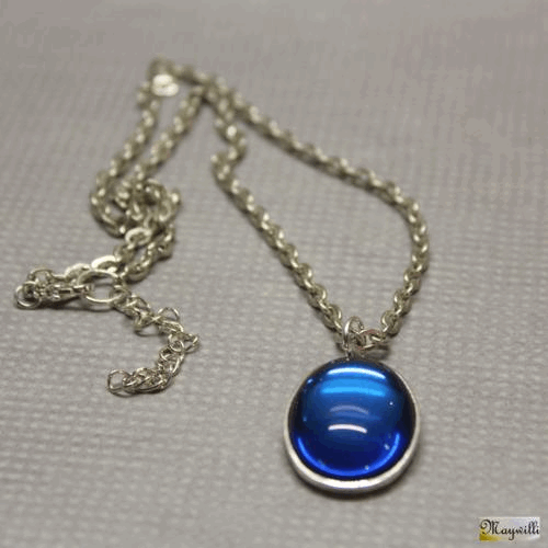 Amulet modry Skleněný kabošon 25 x 18 mm, lůžko postříbřeno Ag, přívěsek visí na bižuterním řetízku v barvě stříbra 44 cm + 5 cm. Jak to bylo s vodníky v Čechách?  DETAIL1 |