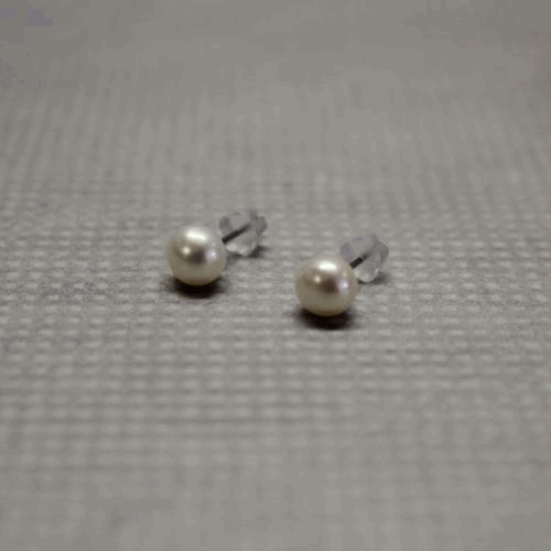 Puzety s bílou říční perlou Náušnice pecky 8 mm, bílá říční perla, puzety chirurgická ocel, silikonové zarážky.  DETAIL1 |