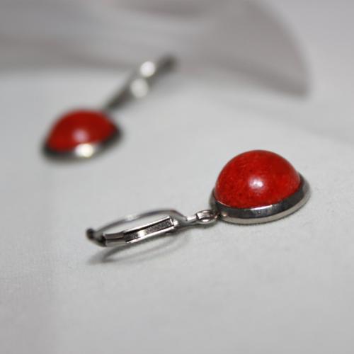 Corals Visací náušnice s přírodním houbovým červeným korálem 10 mm, mechanické háčky. Všechny komponenty z chirurgické oceli 316L, hypoalergenní.  DETAIL1 |