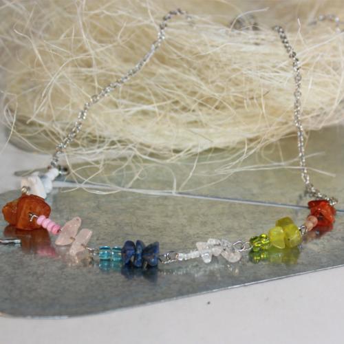 Dotek přírody náhrdelník Náhrdelník z různých zlomků minerálů, skleněného rokajlu, vše z chirurgické oceli.  DETAIL1 |