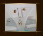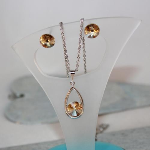 Swarovski souprava gold kapka Swarovski elements Rivoli 8 mm, barva crystal v úpravě golden shadow s permanentním pokovením, výbrus 16 facet, vyrobené v Rakousku. Soupravu tvoří náušnice-puzetky a náhrdelník s přívěskem ve tvaru kapky. Komponenty přívěsku a náušnic rhodium, dříky a řetízek z chirurgické oceli  DETAIL1 |