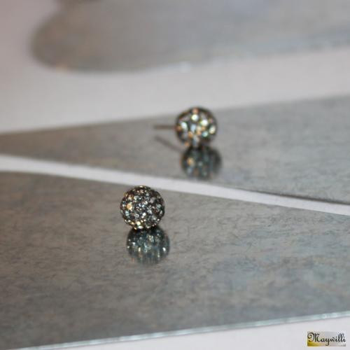 Kuličky na ouška Na výrobu nepřehlédnutelných náušniček-puzetek byly použity štrasové korálky 8 mm ručně vykládané českými šatonovými kamínky Preciosa z broušeného skla, v barvě Black diamond. Všechny komponenty jsou z chirurgické oceli, silikonové zarážky, hypoalergenní.  DETAIL1 |