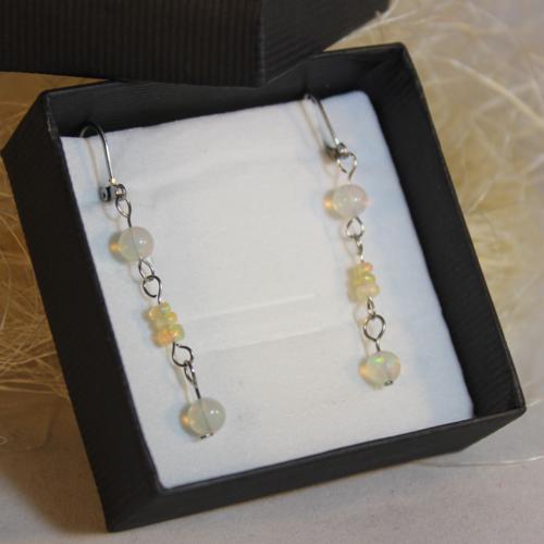 Opálové náušnice Náušnice s Ethiopským Welo (Addis Ababa) drahým opálem, rondelky a kuličky, jsou vyrobeny technikou ketlování. Všechny komponenty jsou z chirurgické oceli.  DETAIL1 |