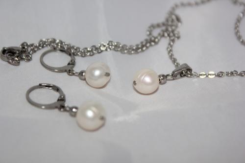 Perlová souprava bílá Přírodní říční perly bílé, chirurgická ocel.  DETAIL1 |