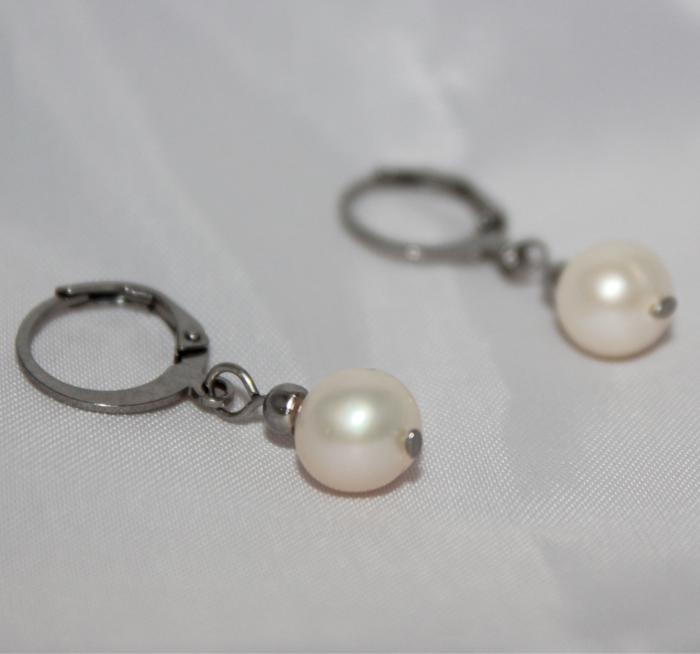 Puzety bílá říční perla Bílá říční přírodní perla, puzety z chirurgické oceli.  DETAIL1 |