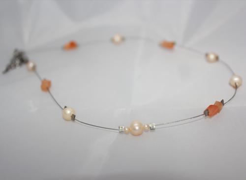 Perlový náhrdelník Přírodní říční perly, zlomky kočičího oka, ocelové lanko.  DETAIL1 |