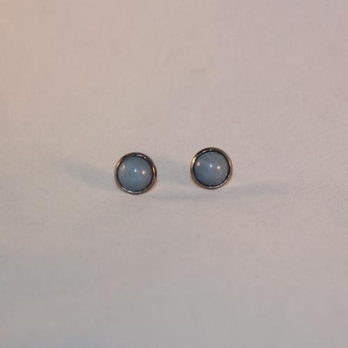 Angelit nebeský Visací náušnice z přírodního angelitu 10 mm, mechanické háčky. Všechny komponenty z chirurgické oceli 316L, hypoalergenní.  DETAIL1 |
