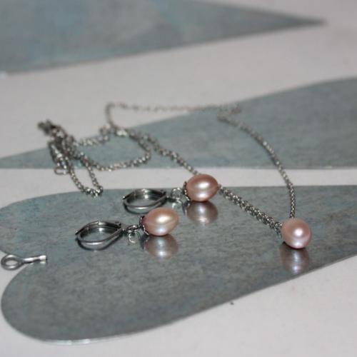 Souorava z říčních perel Jemně růžové přírodní říční perly s výraznými fialkovými odlesky. Všechny komponenty jsou z chirurgické oceli.   DETAIL1 |