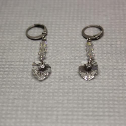 Swarovski, Preciosa srdíčkové crystal AB Preciosa křišťálové srdíčko 10 mm + Swarovski beads. Všechny komponenty jsou z chirurgické oceli 316L. Visací náušnice 2,5 cm + mechanické háčky.   DETAIL1 |