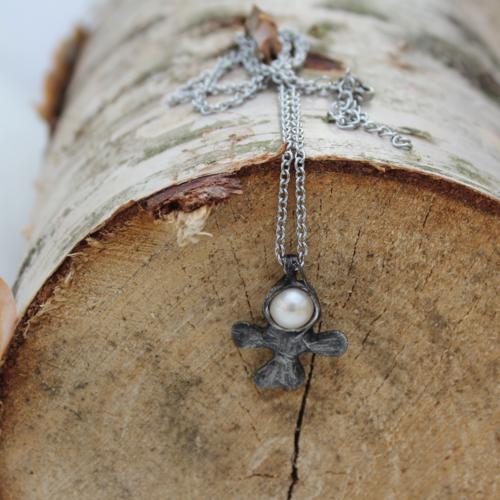 Strážníček Přírodní říční perla, bezolovnatý cín s příměsí stříbra a mědi, patinováno, ručně ryto, leštěno, ošetřeno antioxidantem. Velikost přívěsku 2 cm, řetízek z chirurgické oceli 43 cm + 5 cm.  DETAIL1 |