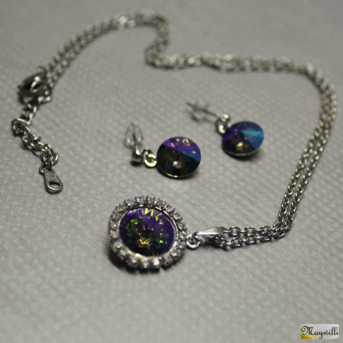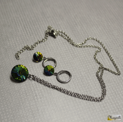 Souprava Swarovski Swarovski elements Rivoli, barva Paradise shine F s permanentním pokovením, výbrus 16 facet, vyrobené v Rakousku. Soupravu tvoří náušnice puzety a náhrdelník s přívěskem zdobeným šatony crystal. Komponenty přívěsku a náušnic rhodium, řetízek z chirurgické oceli.   DETAIL1 |