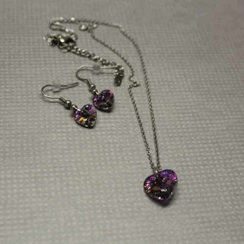 Souprava Swarovski Swarovski elements broušené srdíčka, barva Vitrail AB s permanentním pokovením, vyrobené v Rakousku. Visací náušnice zdobené kuličkami z chirurgické oceli + afroháčky, silikonové zarážky, řetízek se zapínáním na karabinku + prodlužovací řetízek. Všechny komponenty z chirurgické oceli.   DETAIL1 |