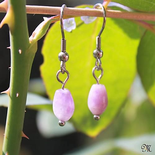 Ametystové kapky Náušnice visací z ametystových přírodních korálek kapek o délce 1,5 cm + afroháčky, silikonové zarážky.  DETAIL1 |