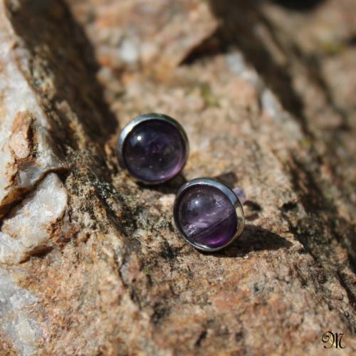 Ametystové puzety Puzetky z přírodního ametystu 10 mm, silikonové zarážky, všechny komponenty z chirurgické oceli.  DETAIL1 |