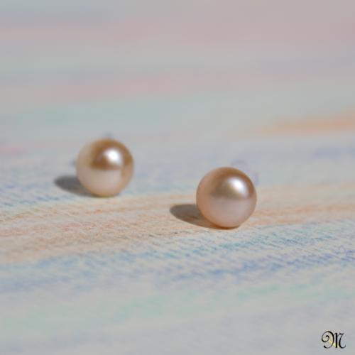 Perla lososová puzety Puzetky říční perla, chirurgická ocel, silikonové zarážky.  DETAIL1 |