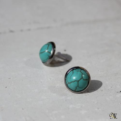 Tyrkenitové puzety Puzetky s tyrkenitem 10 mm, všechny komponenty z chirurgické oceli, silikonové zarážky.  DETAIL1 |